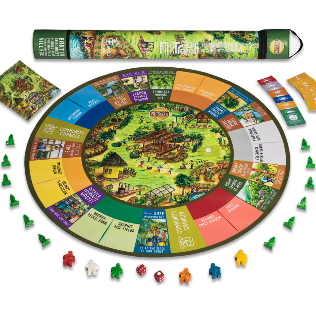 Embark on a quest to create a green, healthy, and thriving community while learning essential lessons about sustainability, disaster management and community resilience. Welcome to Filantropoli, a board game that is not only super fun, but a powerful tool for better understanding what it is like to build a sustainable, thriving village.