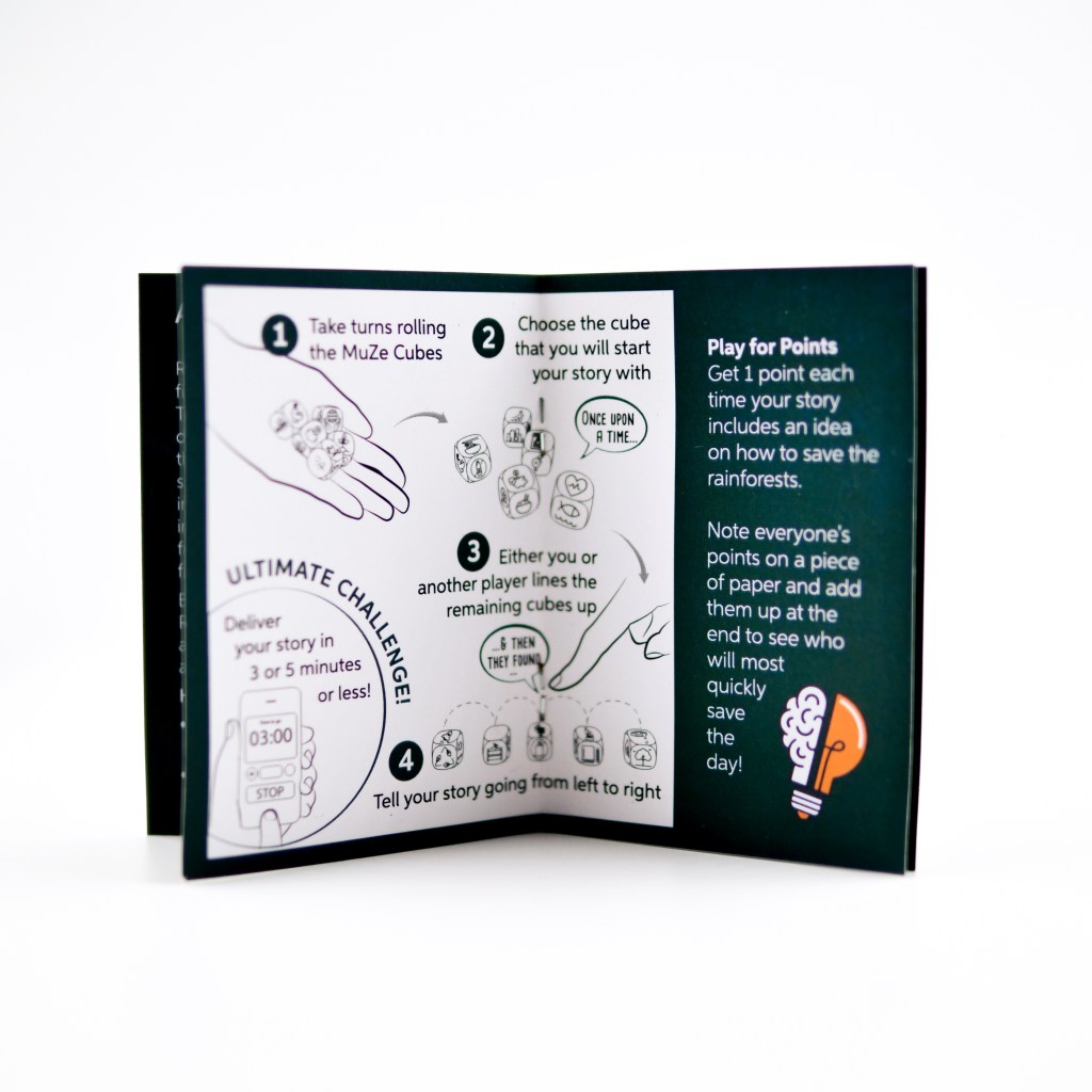 MuZe Cubes hadir dalam enam tema, masing-masing dirancang untuk membahas isu-isu lingkungan yang berbeda dan mendorong percakapan yang bermakna. Anda juga dapat memadupadankan tema-tema tersebut untuk petualangan mendongeng yang lebih menarik. Dengan gameplay yang dirancang untuk 2-6 pemain atau tim, Anda dapat menyesuaikan pengalaman Anda dengan memilih dari permainan game yang mudah hingga opsi yang menantang yang dijelaskan dalam buku aturan yang disertakan.