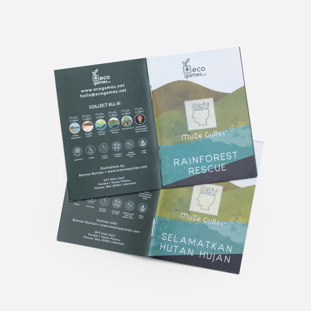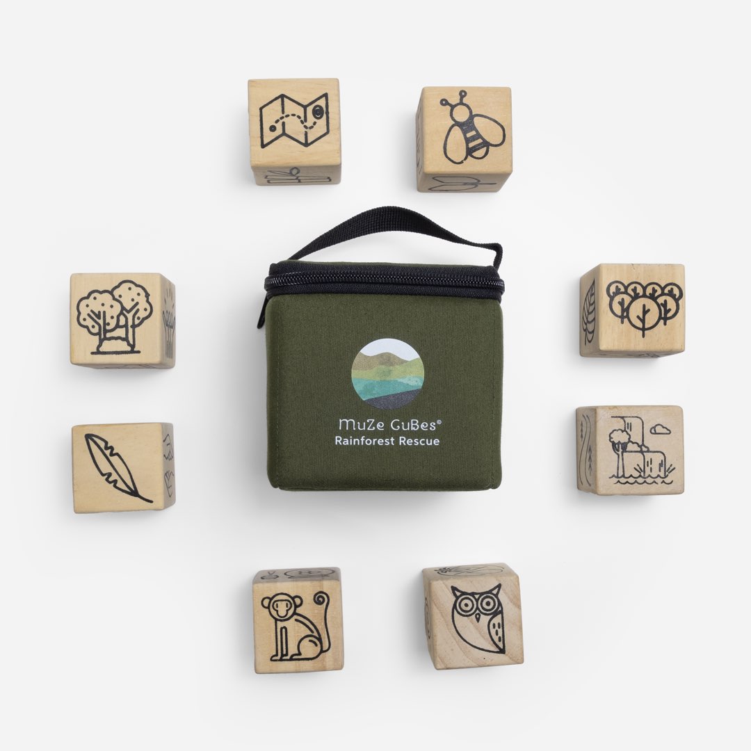 MuZe Cubes Selamatkan Hutan Hujan mengajak pemain untuk bergabung dalam sebuah pencarian untuk menyelamatkan hutan hujan dunia yang berharga. Melalui cerita dan pembuatan sandiwara dengan menggunakan petunjuk visual yang disertakan di setiap kubus, para pemain berbagi pemikiran tentang keanekaragaman hayati hutan hujan, serta ancaman yang ditimbulkan oleh deforestasi terhadap dunia kita. Setiap set mencakup petunjuk untuk lebih dari 1 juta cerita! Gunakan MuZe Cubes Selamatkan Hutan Hujan untuk mengeksplorasi peran penting hutan hujan dalam ekosistem planet kita dan mencari solusi untuk melindungi habitat vital ini. MuZe Cubes Selamatkan Hutan Hujan menumbuhkan kesadaran untuk konservasi hutan hujan.