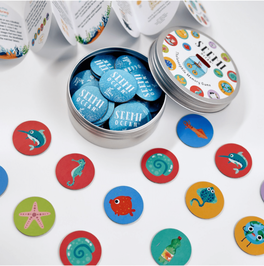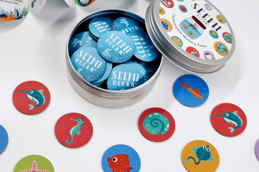 SeeMi Ocean is a memory game that combines finding matching pairs with visual clues that introduce ocean conservation. Designed for 2-8 players or teams, the goal is simple: flip over two tokens at a time and try to find matching pairs. As you earn points, you’ll be invited to consider a world of weird and wonderful ocean creatures as well as plastic pollution in our oceans.