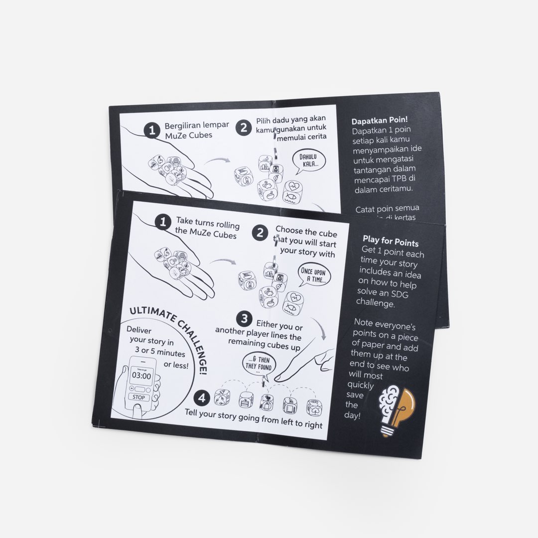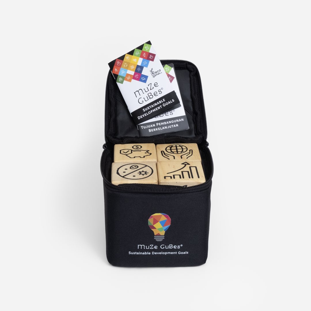 MuZe Cubes SDG encourages engagement with the 17 Sustainable Development Goals through creative storytelling and skits, fostering discussions on local and global solutions for a sustainable future. This creative game is ideal for group dialogue and educational settings.