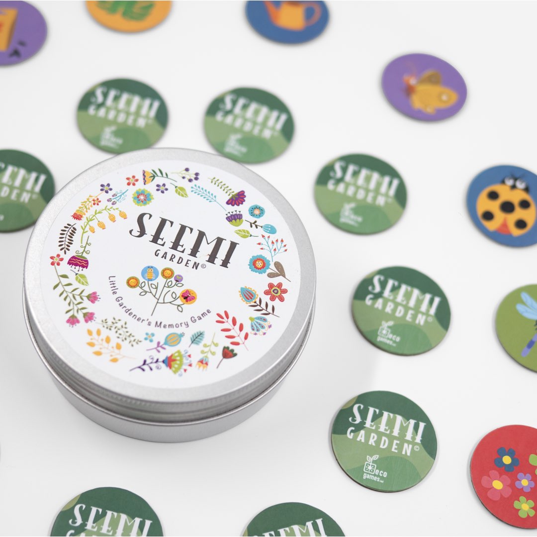 SeeMi Garden is a fun, pocket-sized memory game where players of all ages can challenge each other to match pairs of garden critters, various flora, yummy harvests, and clues that show examples of things we can use to grow our own food. Playing SeeMi Garden with your family or friends sharpens your recognition, retention, and memory skills and can even stimulate dialogue around what elements you can find or introduce into your own gardens. Perfect for all ages, SeeMi Garden includes instructions for several different ways you can play that are appropriate depending on the player’s age and available playtime.