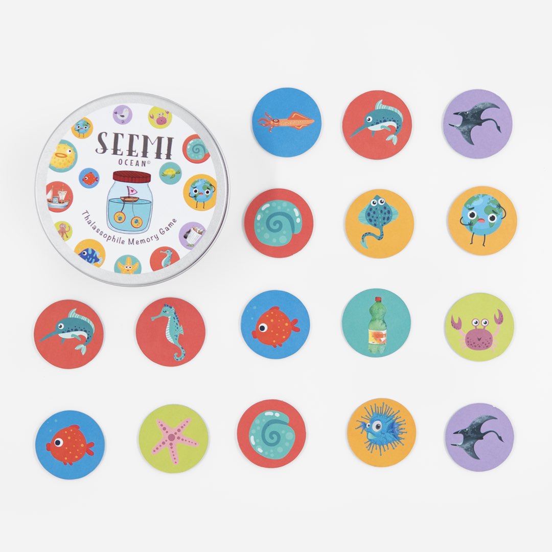 SeeMi Ocean is a fun, pocket-sized memory game where players of all ages can challenge each other to match pairs of delightful ocean creatures and clues that show examples of marine concerns. Playing SeeMi Ocean with your family or friends sharpens your recognition, retention, and memory skills and can even stimulate dialogue around marine life and the impacts of plastic pollution in our world. Perfect for all ages, SeeMi Ocean includes instructions for several ways you can play that are appropriate depending on the player’s age and available playtime.